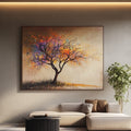 The soft beige background adds a timeless elegance, making the bold colors of the tree stand out beautifully.